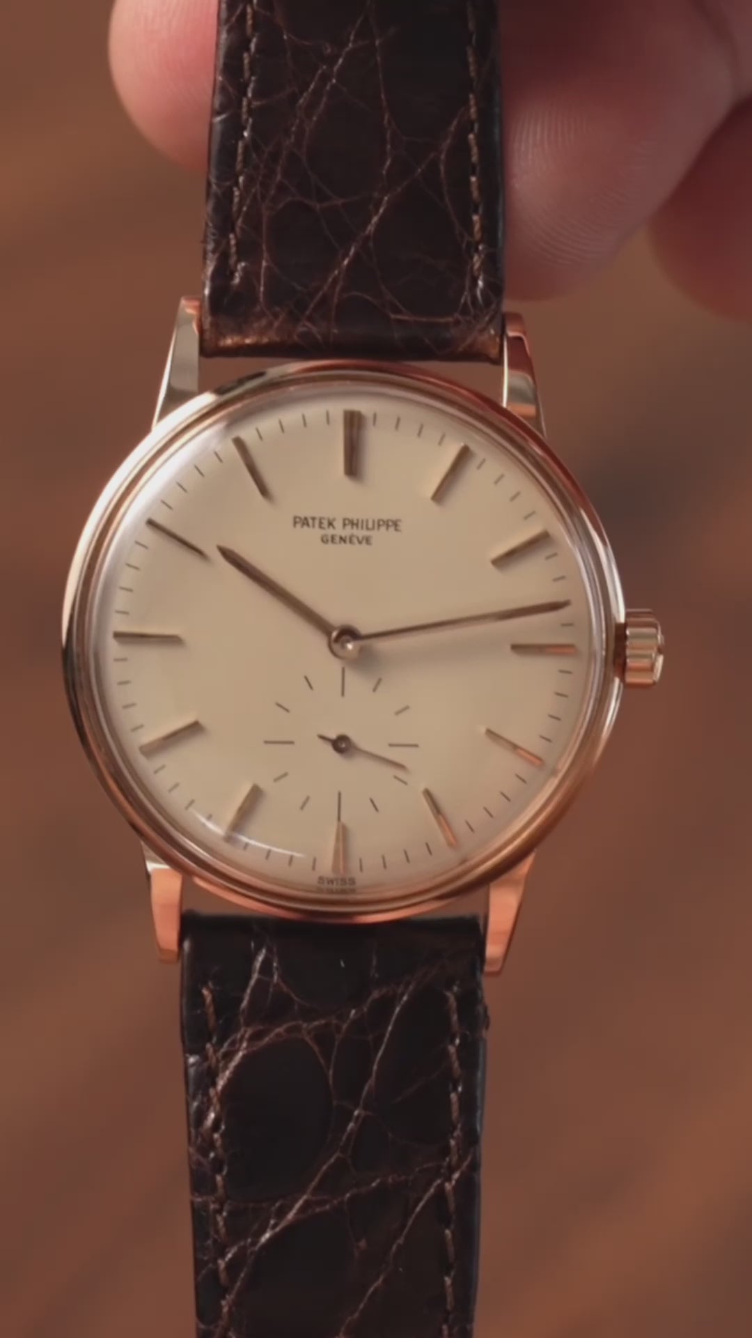 This watch is the Calatrava reference 3425, a model that was introduced in 1960 and produced until around 1967. It features a 33.5mm case, a non-date automatic movement, the Cal. 27-460, and a screw-down case back, making it one of the most practical vintage Patek Philippe watches.