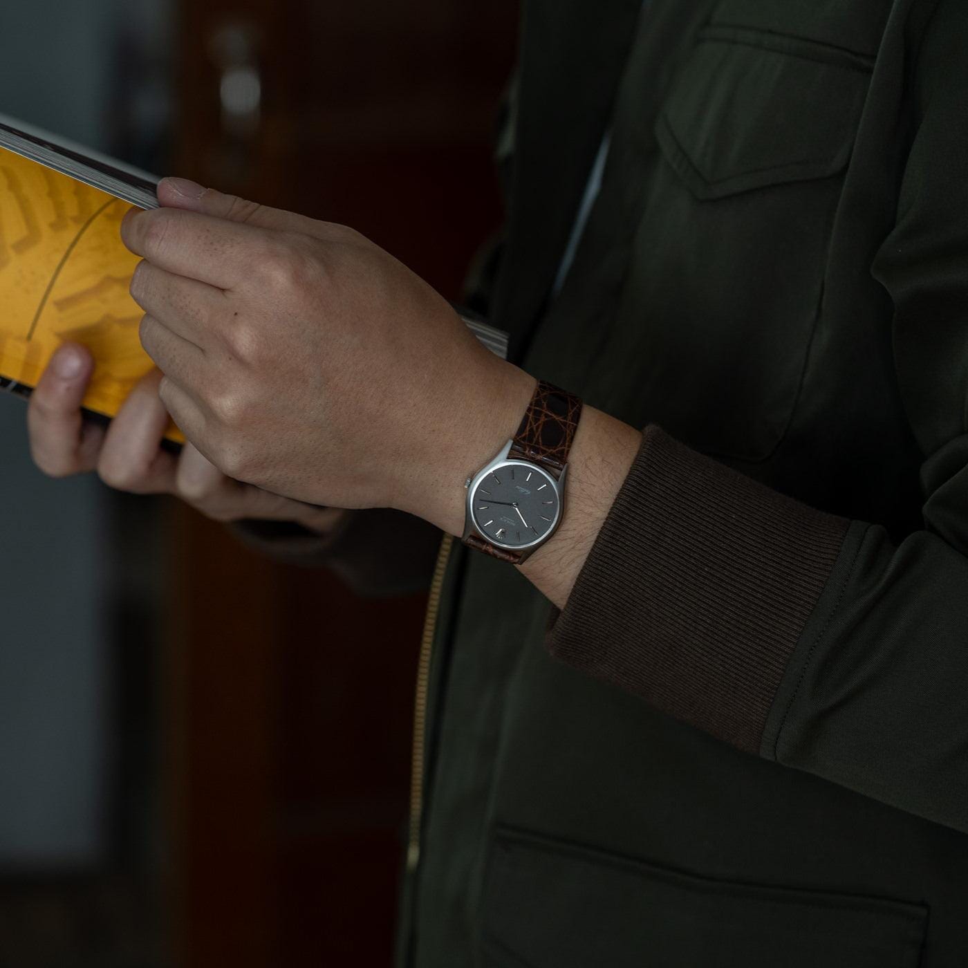 It comes with mat grey dial and WG bar hour markers and handset.