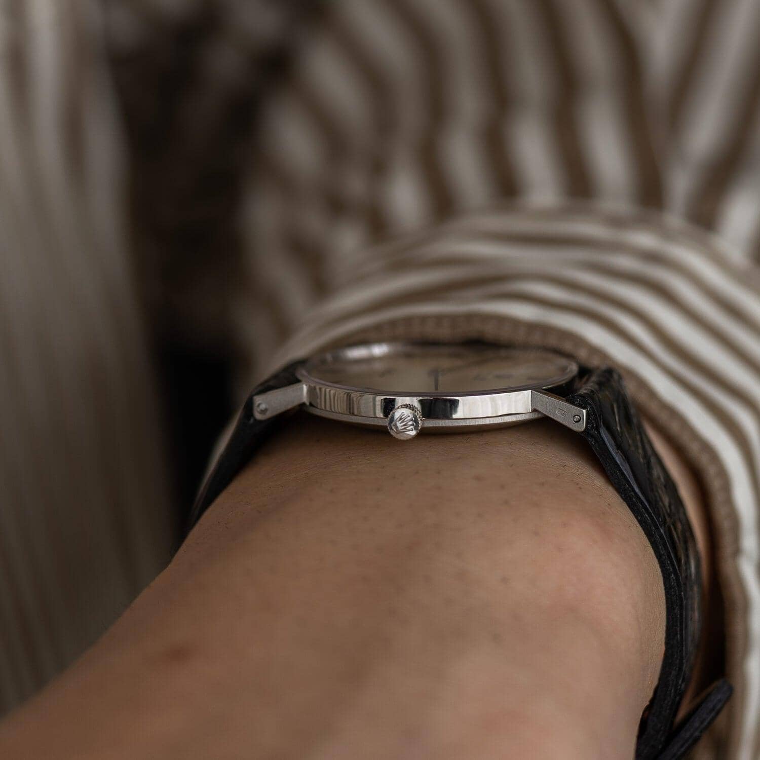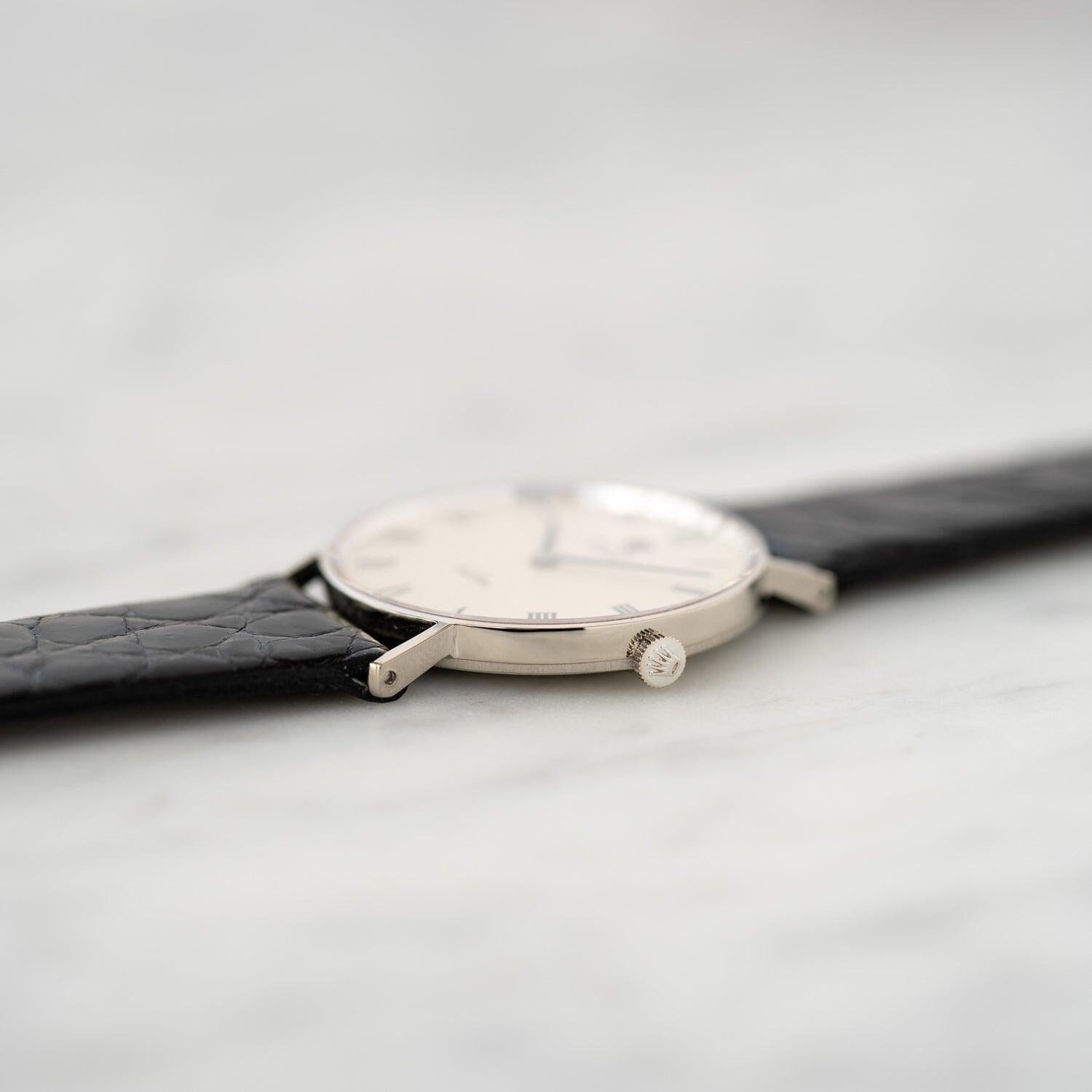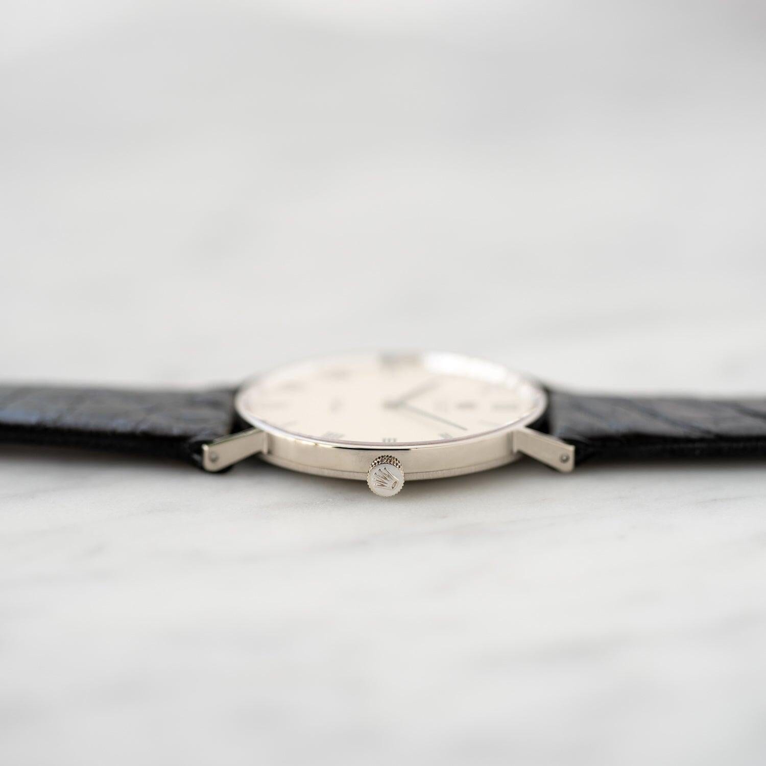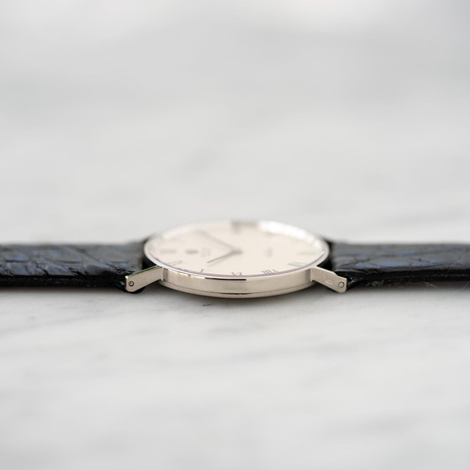 The material of the case is Cellini, which is produced only in gold or platinum, but there are countless variations in the combination of the case, dial and hands.