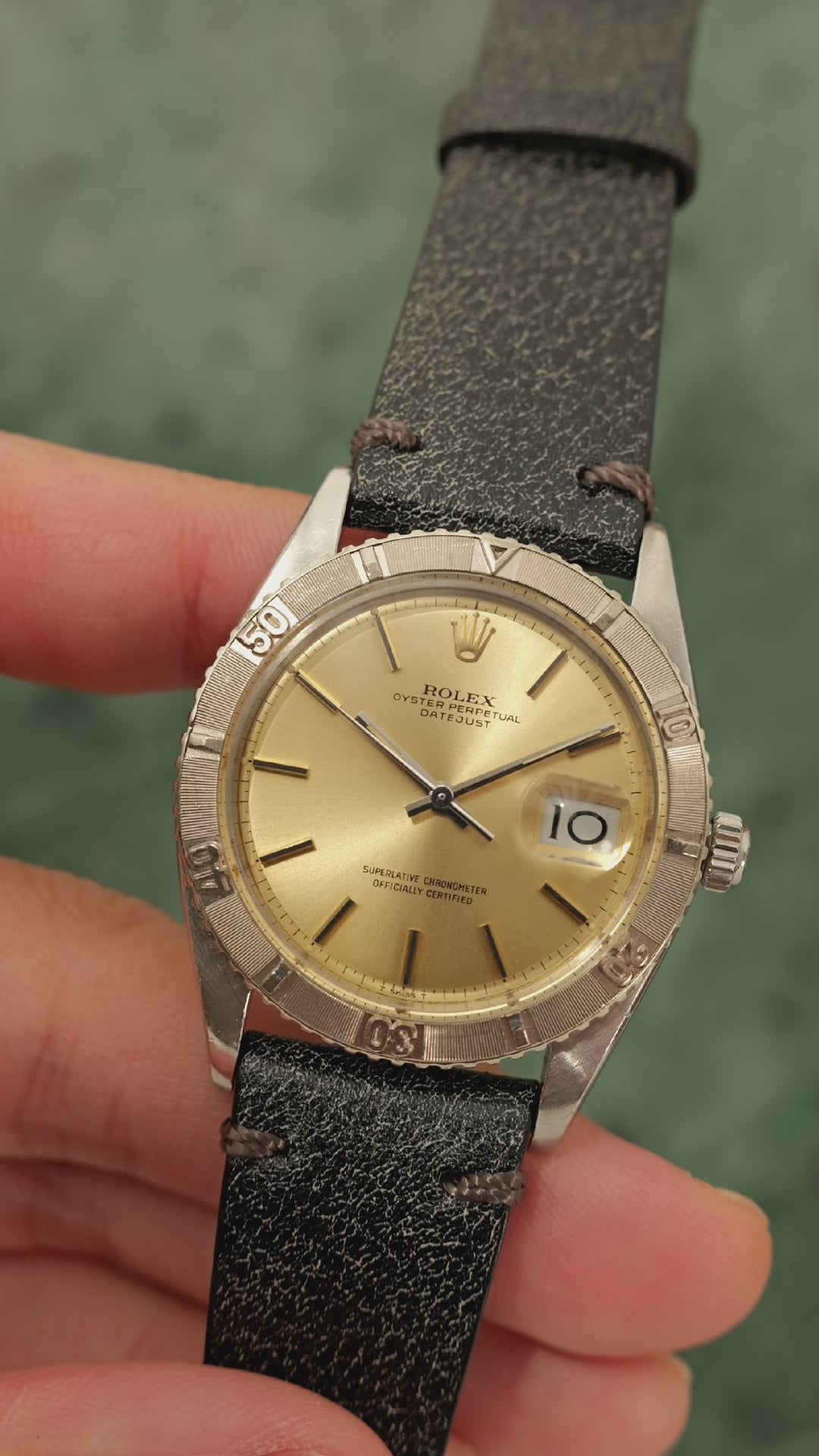This Datejust, with its bidirectional rotating bezel with numerals for measurements, is officially known as a Turn-O-Graph.