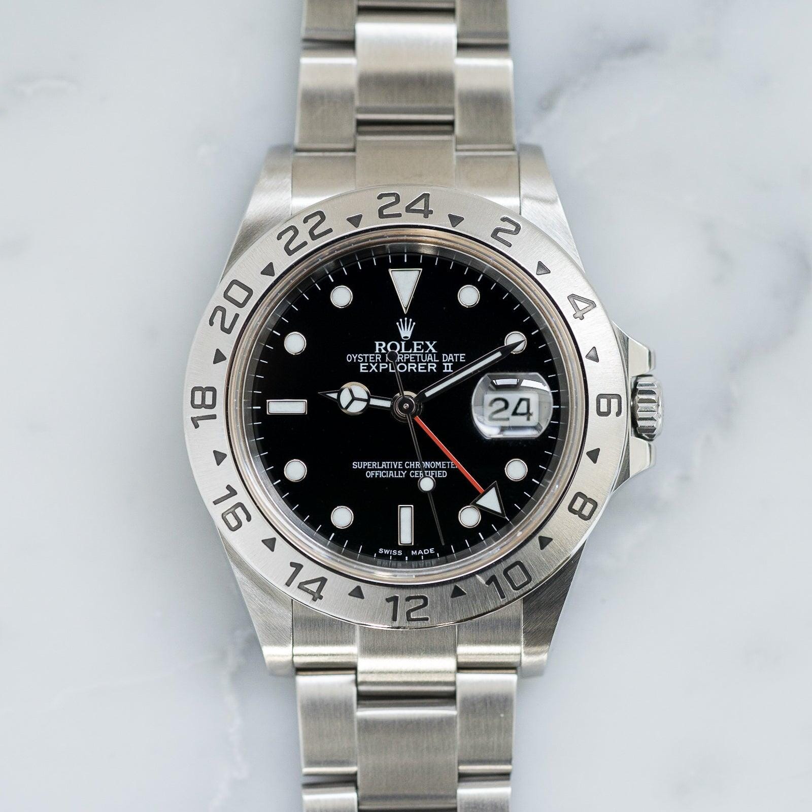 This EXII has a black dial and was produced in 2004, so the luminous on the indexes and hands is Luminova.