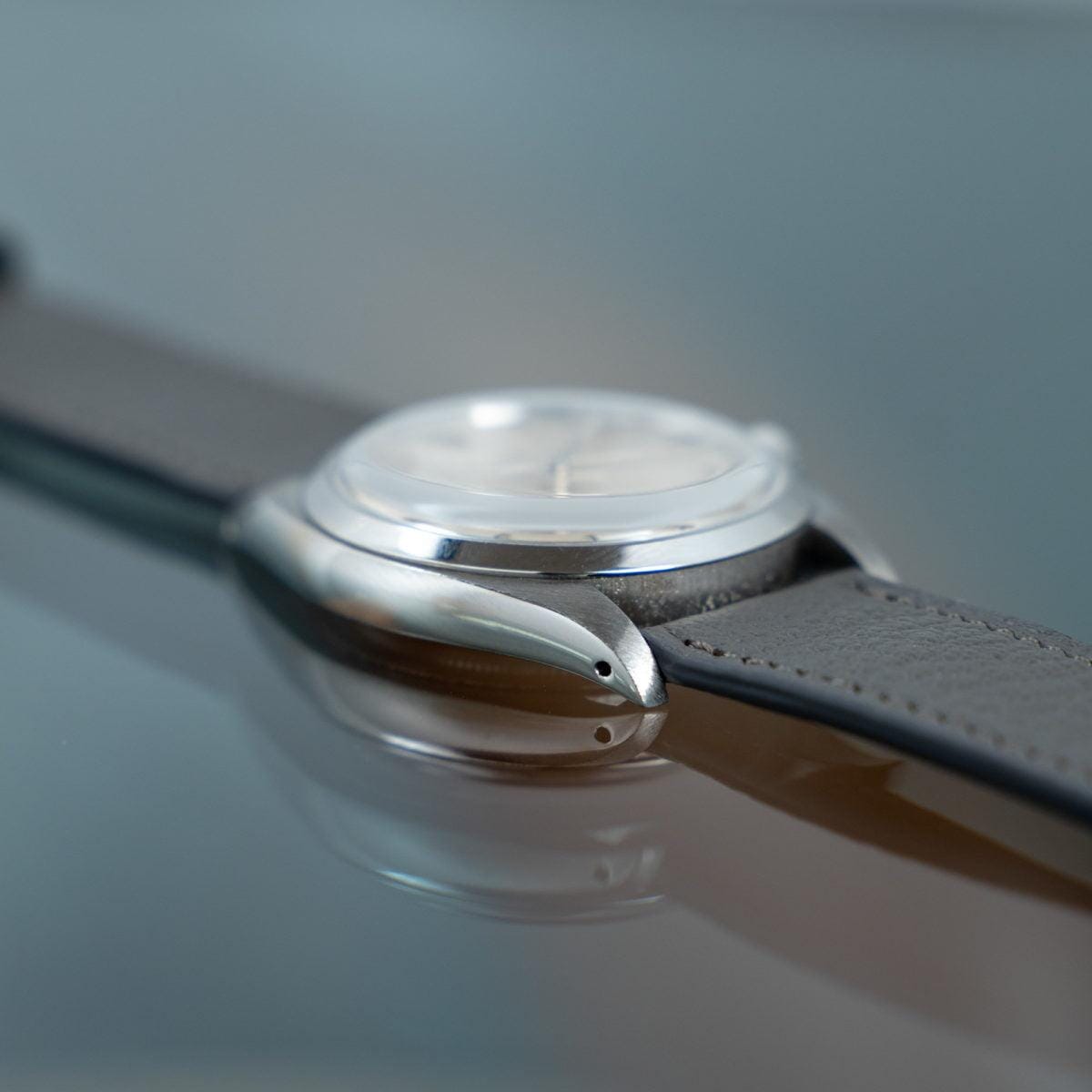 シルバーダイアルにペンシルハンド、シルバーレターの非常にシンプルなプレシジョンです。